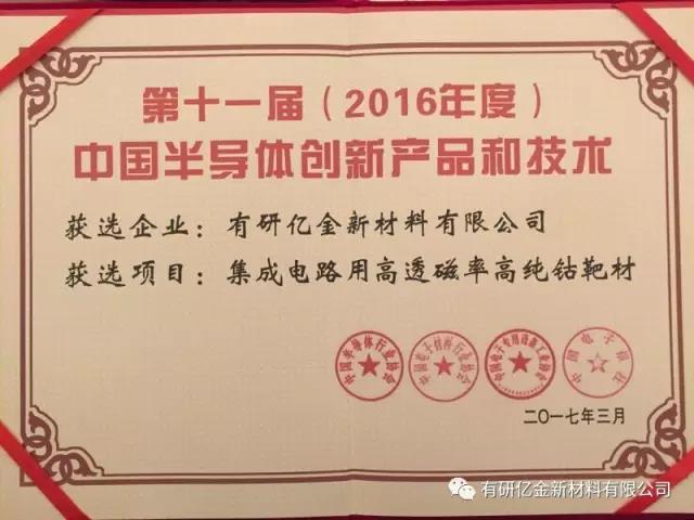 会上有研亿金新材料有限公司的高纯钴靶材获得第十一届中国半导体创新产品和技术奖,该款产品如半导体靶材制造领域皇冠上的明珠,摘取来之不易。