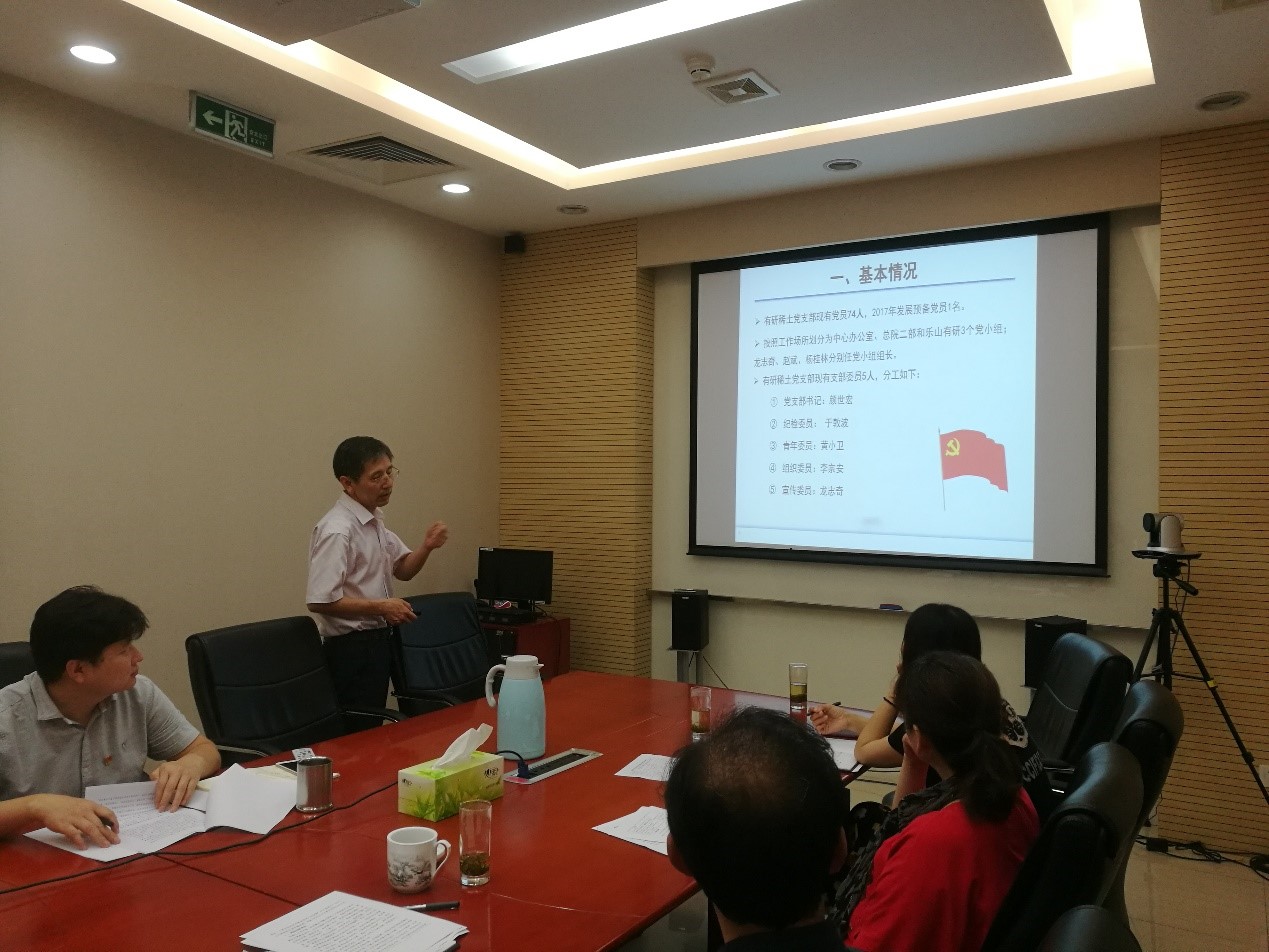启动会后,有研稀土党支部书记颜世宏向巡察组、有研稀土领导班子做了党支部工作汇报。