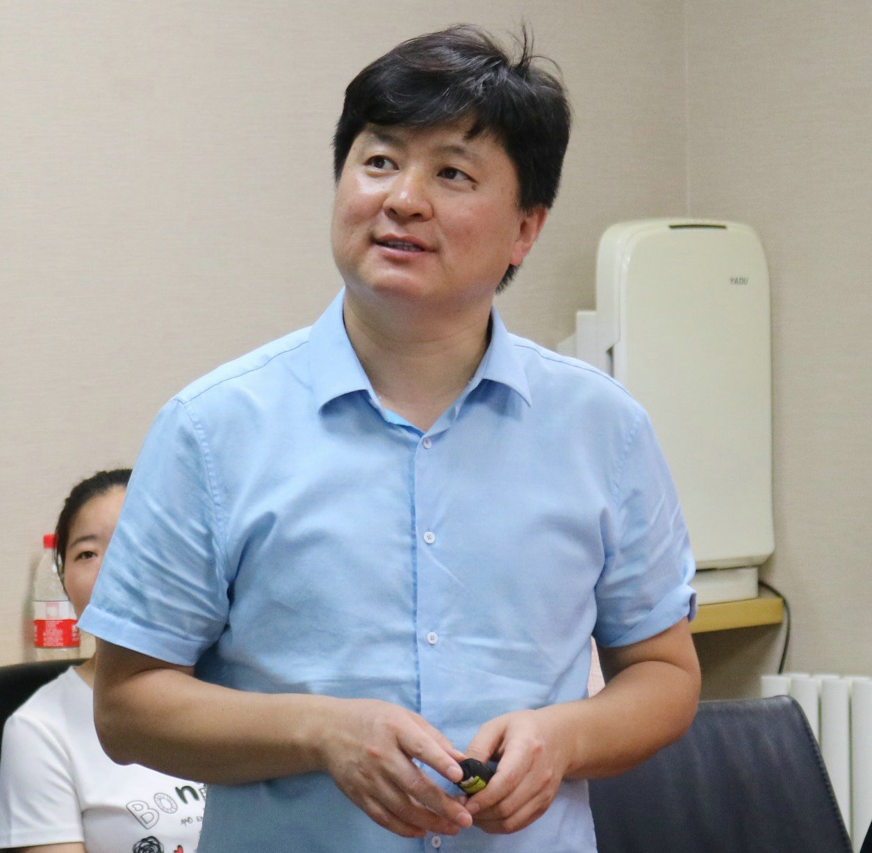 有研稀土党支部优秀共产党员赵龙胜长期工作在福建项目现场,通过现场视频连线,他向大家介绍了自己的工作环境,交流了自己的工作体会。