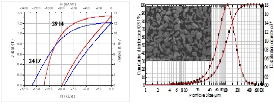 有研稀土自主研发高性能异方性粘结磁粉/磁体制备技术及装备,实现高性能磁粉/磁体的批量制备,磁能积能达到传统各向同性粘结磁体两倍以上,有利于电机/电子器件的小型化;且产品尺寸精度高,形状自由度大,耐腐蚀性优良。
