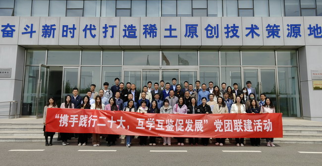 为深入学习贯彻习近平新时代中国特色社会主义思想和党的二十大精神,牢记习近平总书记关于推动稀土产业绿色可持续发展的重要指示,联合推动企业高质量发展,4月26日,有研稀土新材料股份有限公司党总支联合中国稀土集团国际贸易有限公司党委、中国原子能工业有限公司战略规划部党支部、原能(海南)资源有限公司党支部开展“携手践行二十大、互学互鉴促发展”党团联建活动。有研稀土党总支书记、总经理刘荣辉,党总支委员、副总经理曾佳和冯宗玉,国贸公司党委书记、董事长黄崇彪,中国原子能总经理助理赵勇,原能海南党支部书记、总经理王卫东,支部委员、副总经理潘悦出席活动。