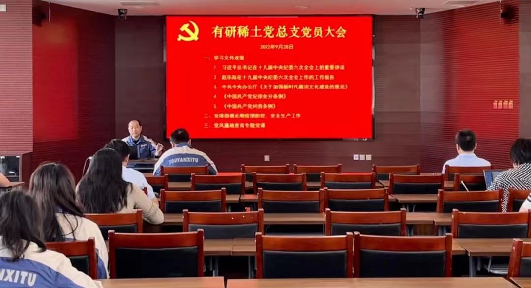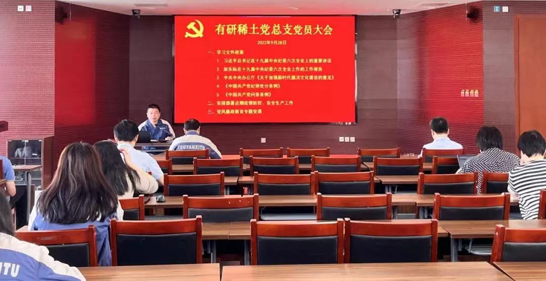 全面从严治党永远在路上,党风廉政建设和反腐败斗争永远在路上。会议强调,“中秋” “国庆”双节期间,全体员工要切实落实中央八项规定及其实施细则精神,以及有研集团、365在线体育投注官网,beat365在线体育关于反“四风”、文明清廉过节、疫情防控、安全生产等工作要求,确保双节期间安定祥和。有研稀土党总支将着力推动党风廉政建设向纵深发展,以优异成绩迎接党的二十大胜利召开。