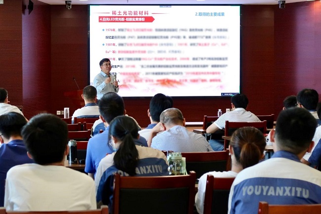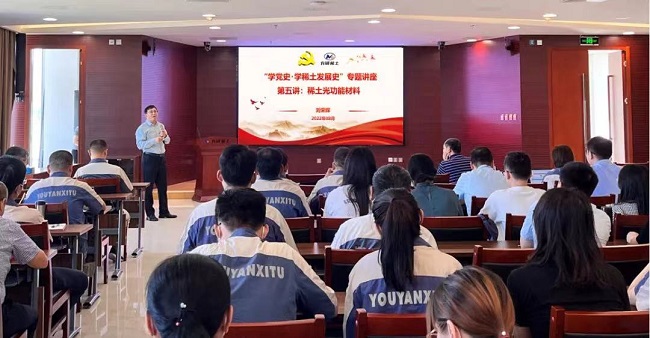有研稀土党总支将“学稀土发展史”纳入党史学习教育全过程,开展“五史融合”学习教育。目前,“学党史·学稀土发展史”系列讲座已进行了五讲,在广大党员干部中引发热烈反响。