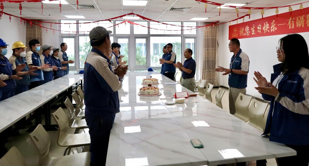 许国栋、王志强代表有研稀土党总支、工会委员会给现场的寿星们送上最真挚的祝福,并感谢职工为公司发展作出的贡献,希望大家相互团结,共同努力,为公司的高质量发展共同创造更加美好的明天。随后,寿星职工分享了美味的生日蛋糕,并领取精美的生日礼物。