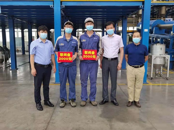 黄倬一行深入工作现场,看望、慰问在岗员工,与大家亲切交谈,并代表集团领导班子向员工们表达问候,叮嘱大家要注意防暑降温、劳逸结合,确保生产安全,同时也为大家带来了祛暑慰问品。