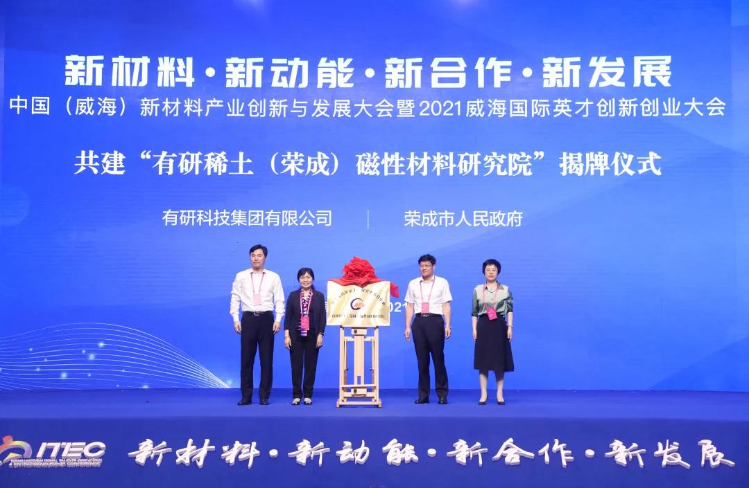 随后,有研集团首席科学家黄小卫院士、有研集团副总经理王兴权与荣成市委书记包希安、荣成市人民政府副市长隋艳秋共同为稀土材料国家工程研究中心分中心——有研稀土(荣成)磁性材料研究院揭牌;下一步,有研稀土(荣成)磁性材料研究院将致力于开发高性能磁性材料及其关键共性技术。