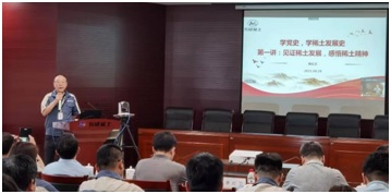 大会第四项,有研稀土李红卫教授做“学党史•学稀土发展史”专题讲座第一讲——《见证稀土发展,感悟稀土精神》。报告从1956年有色院研究稀土领域开始,将有研稀土的发展划分为奠基创业、成长发展、公司化运营和高质量发展阶段,对每一阶段有研稀土取得的成就,面临的困难,克服困难的经验,为大家做了深刻的讲解,让大家更清楚地感受到有研稀土的前辈们筚路蓝缕,创业之艰,并从经验中汲取宝贵精神财富,更好地激励员工在工作中攻坚克难,勇于创新。