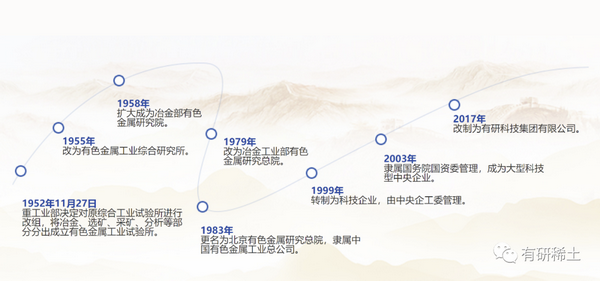有研稀土新材料股份有限公司(简称有研稀土)是2001年由有研科技集团有限公司(原北京有色金属研究总院)作为主发起人对稀土材料国家工程研究中心进行改制而成立的股份制公司,是高新技术企业。其前身成立于1958年,是我国最早从事稀土研究开发的单位之一, 也是我国稀土工业技术的发源地之一。