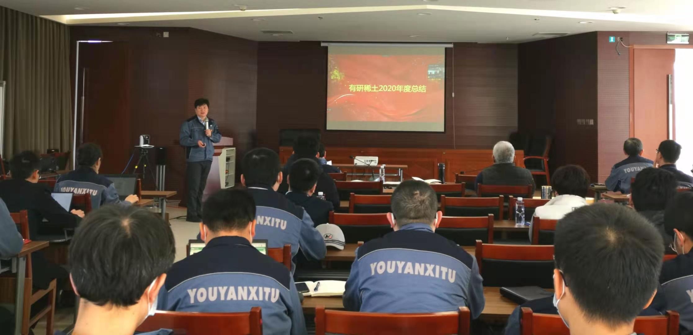 2021年2月4日,有研稀土以现场与视频相结合的方式召开2020年度总结表彰大会。公司领导班子成员、本部及子公司中层以上管理人员、受表彰的优秀员工在现场参加会议,黄小卫院士、李红卫教授及京外公司有关人员视频参会。公司高级专务颜世宏主持会议。