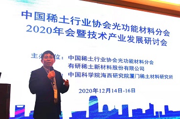 中国稀土行业协会光功能材料分会2020年会暨技术产业发展研讨会于12月14-16日在福建厦门召开。会议由中国稀土行业协会光功能材料分会和有研稀土新材料股份有限公司主办,中国科学院海西研究院厦门稀土材料研究所承办。中国稀土行业协会杨文浩秘书长和中国工程院院士、有研科技集团首席专家黄小卫出席会议并致辞。