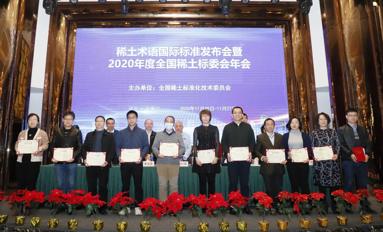 会议颁发了“2020年度稀土标委会技术标准优秀奖”,并对“2020年度稀土标准化先进工作者”进行了表彰。有研稀土及其子公司乐山有研牵头制定的两项行业标准《绿色设计产品评价技术规范 稀土火法冶炼产品》《镧铈金属》均获得2020年度稀土标委会技术标准奖;赵龙胜博士获评2020年度稀土标准化先进工作者。(作者:胡权霞)