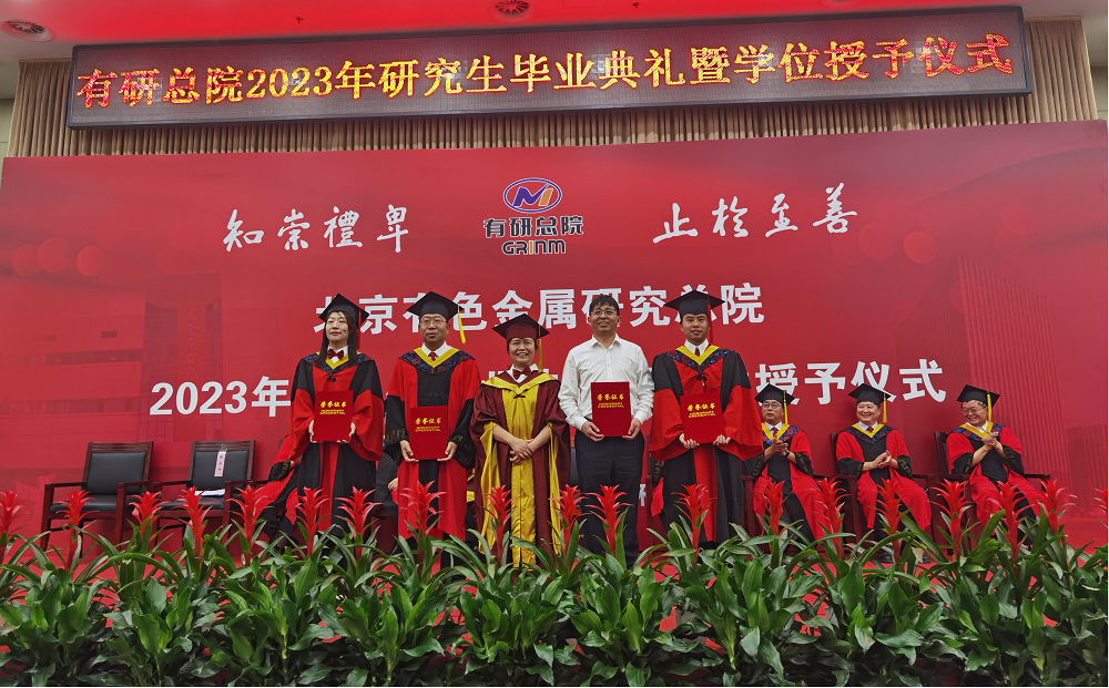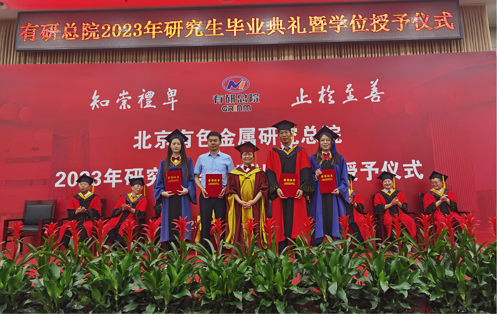6月29日,北京有色金属研总院2023年研究生毕业典礼暨学位授予仪式在怀柔科创园举行。有研稀土(稀土国家工程研究中心,以下简称“稀土中心”)导师、毕业生及在读研究生代表参加了毕业典礼。王承二等5名同学获得博士学位,王艺璇等6名同学获得硕士学位。