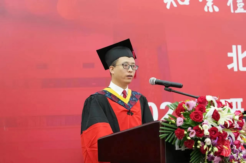 稀土中心博士毕业生王承二代表全体毕业生发言,向各位领导和老师的悉心栽培表达诚挚的感谢。他表示,历久弥新的有研精神、言传身教的人格魅力,是有研学子坚定理想信念、坚守精神追求的信仰之基,是有研人拼搏创新、共同构筑理想人格的价值坐标,将成为人生路上的重要指引。