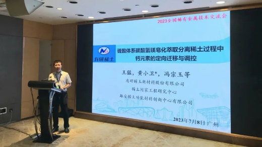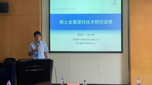 会议设置了稀有金属绿色选矿、稀有金属绿色冶金、稀土绿色冶金与材料制备、稀有金属材料与加工、高纯稀有金属及靶材、稀有金属固废资源化与环境保护等六个专题的分会场。稀土国家工程研究中心、有研稀土新材料股份有限公司、雄安稀土功能材料创新中心10余名专家、学者、研究生参加了会议。有研稀土副总经理冯宗玉担任大会秘书长、稀土绿色冶金与材料制备分会场主席,副总经理王志强担任高纯稀有金属及靶材分会场主席,正高级工程师王猛担任稀土绿色冶金与材料制备专题会场主持人,正高级工程师张小伟担任高纯稀有金属及靶材专题会场主持人,王猛、张小伟、李铮分别作了题为“硫酸体系碳酸氢镁皂化萃取分离稀土过程中钙元素的定向迁移与调控”“稀土金属提纯技术研究进展”“离子型稀土矿硫酸镁浸取过程铝的赋存形态转变机理研究”的分会邀请报告。