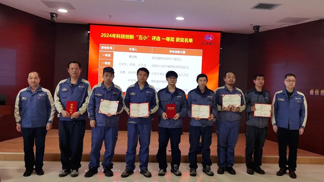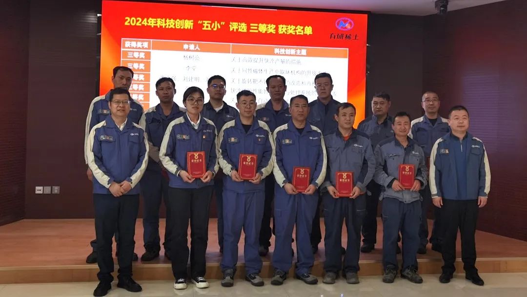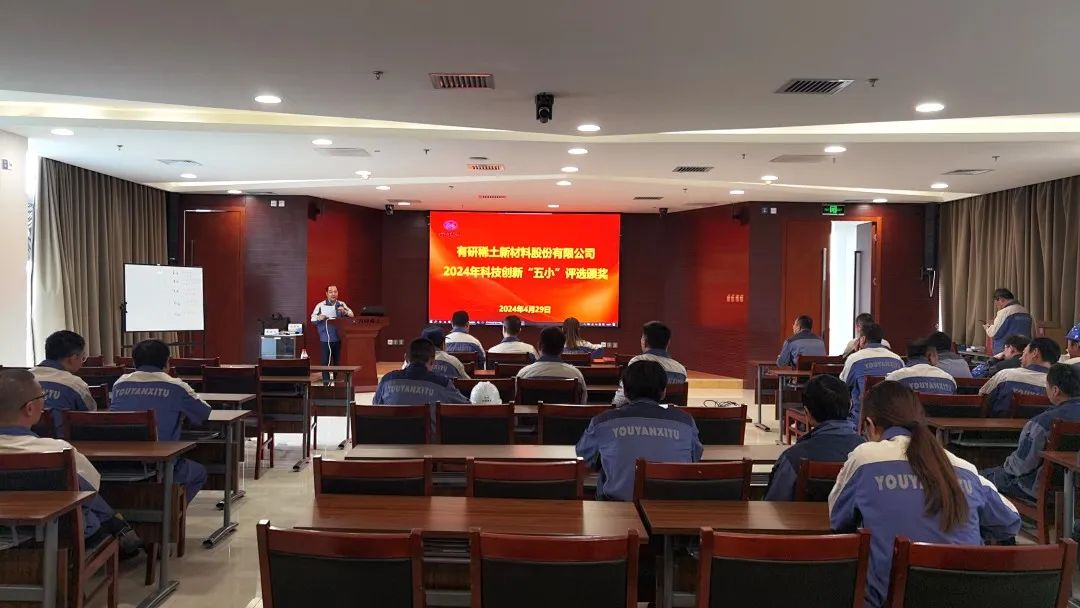 2024年4月29日,有研稀土在燕郊基地召开了科技创新“五小”表彰大会,公司领导班子成员、各部门负责人及获奖人员50余人参加了会议。