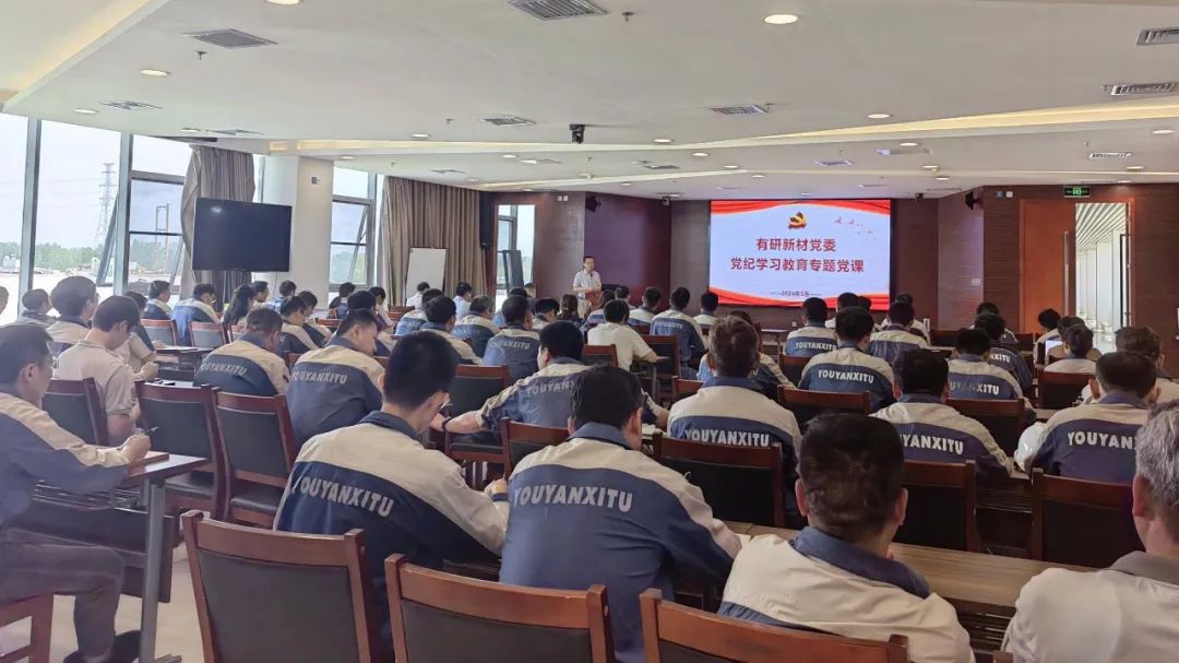 5月14日,365在线体育投注官网,beat365在线体育党委书记、董事长杨海到有研稀土党总支指导党纪学习教育工作并讲授专题党课,持续推进党纪学习教育走深走实,切实增强广大党员干部的纪律意识和规矩意识,进一步筑牢拒腐防变的思想防线。有研稀土党总支委员、班子成员,全体党员、部分团员青年参会。