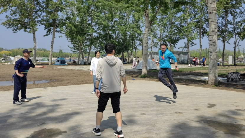 大家在踢毽子、投壶、跳绳、策略卡牌、揪尾巴等趣味活动中默契配合、相互追逐,活动现场欢声笑语不断。